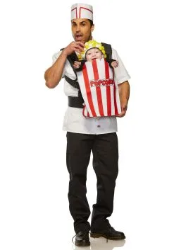 If you and your child both love the movies (even if he prefers the Paw Patrol series over Fight Club), you’re definitely going to love this Carrier Popcorn and Movie Usher Costume! Keep an eye on your sweet little munchkin by popping him (get it?) into his carrier and covering it with the red and white striped popcorn bag cover. The accompanying hat looks like its covered in kernels of scrumptious buttered popcorn. You also get a stylish hat that’s designed to look like a movie theater usher’s stylish lid. Everyone will want to see the movie that you’re working!