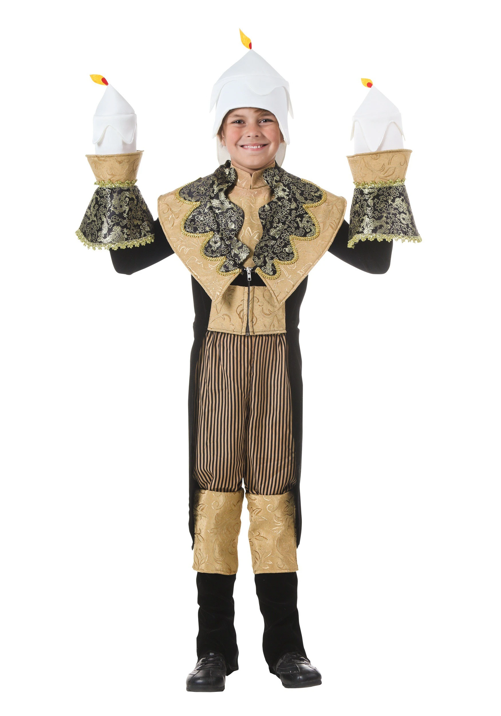 But maybe one of the best things we have is light on demand. Imagine what it was like in the old days to have to light a candle every time it got dark. Get up in the middle of the night to go to the bathroom? Light a candle. Don’t forget to put it out when you go back to bed. Oops, forgot something? Light it up again. You see where we’re going with this. Flipping a light switch is so much nicer. We’d rather save the candlesticks for throwback costumes like this one. Our Child Candlestick Costume is great for plays, great for Halloween, just not for every day life…