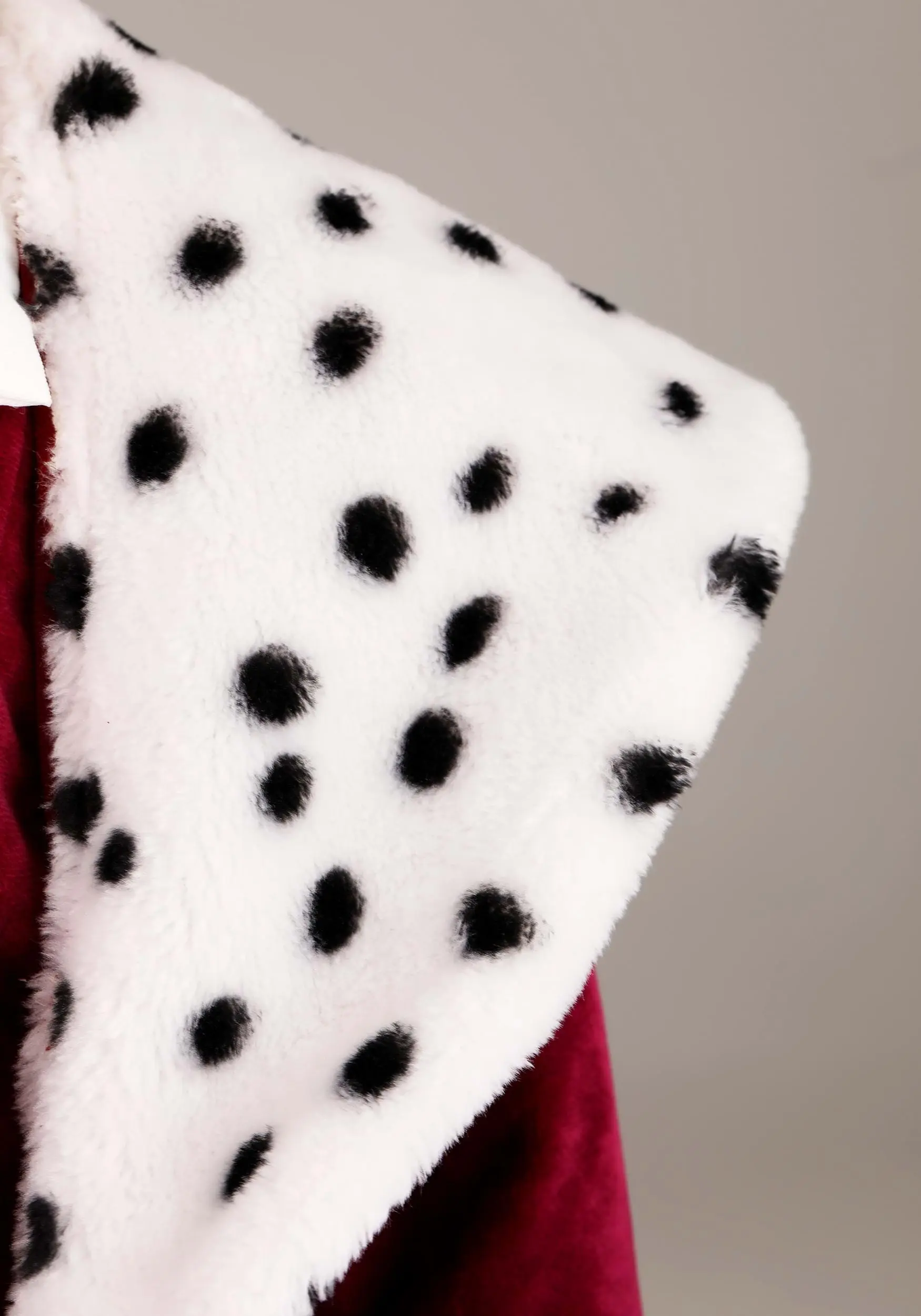 - Velour jacket has faux fur collar & front edging; brocade ribbon edging at sleeve cuffs & hem