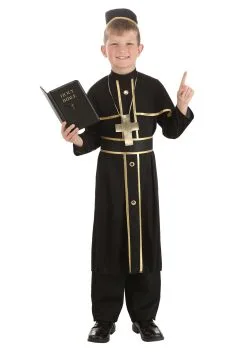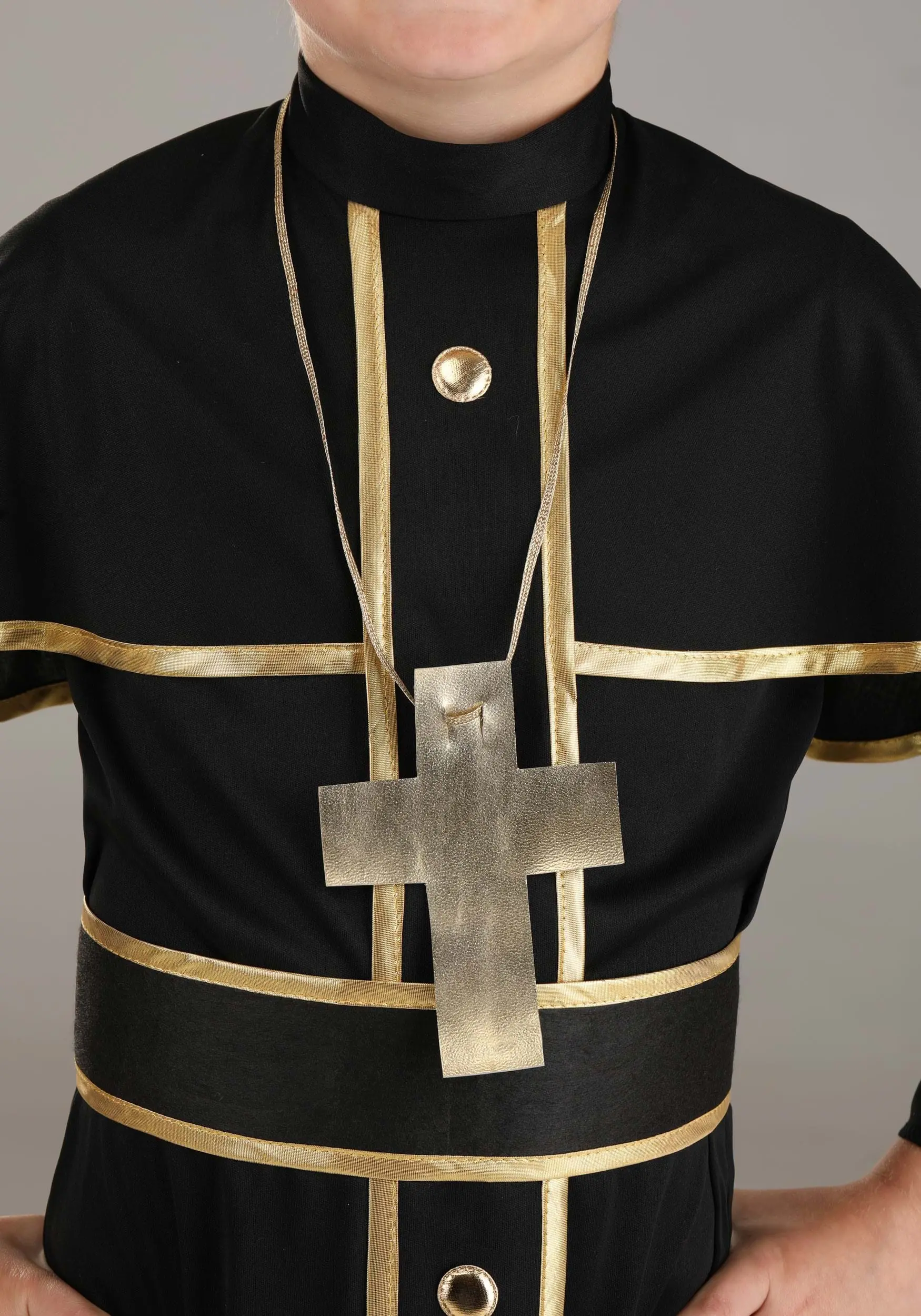 - Robe has capelet & false placket edged w/ metallic gold binding