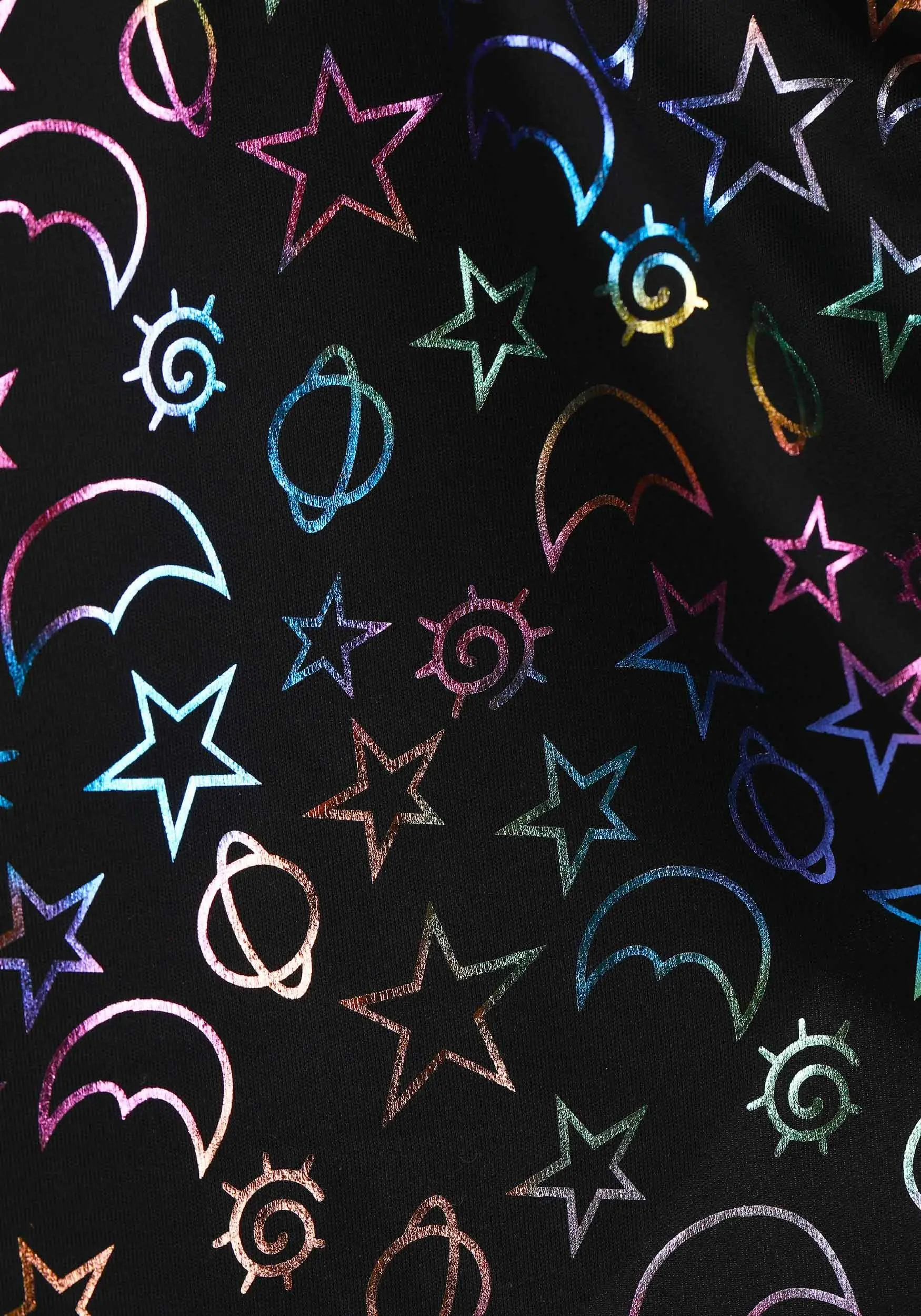 - Cloak fabric mas metallic printed stars, moons, & planets