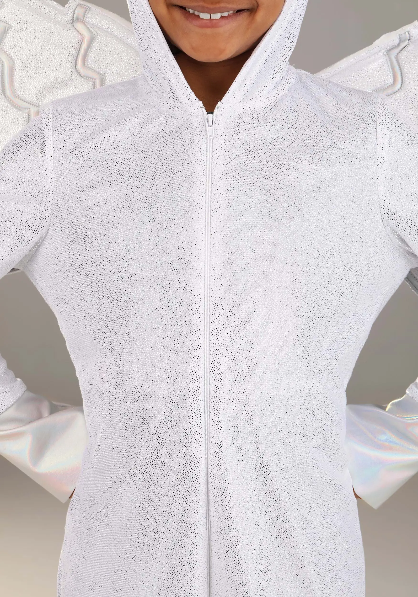- Foam-backed velour wings attach to back of jumpsuit w/ hook & loop fastener