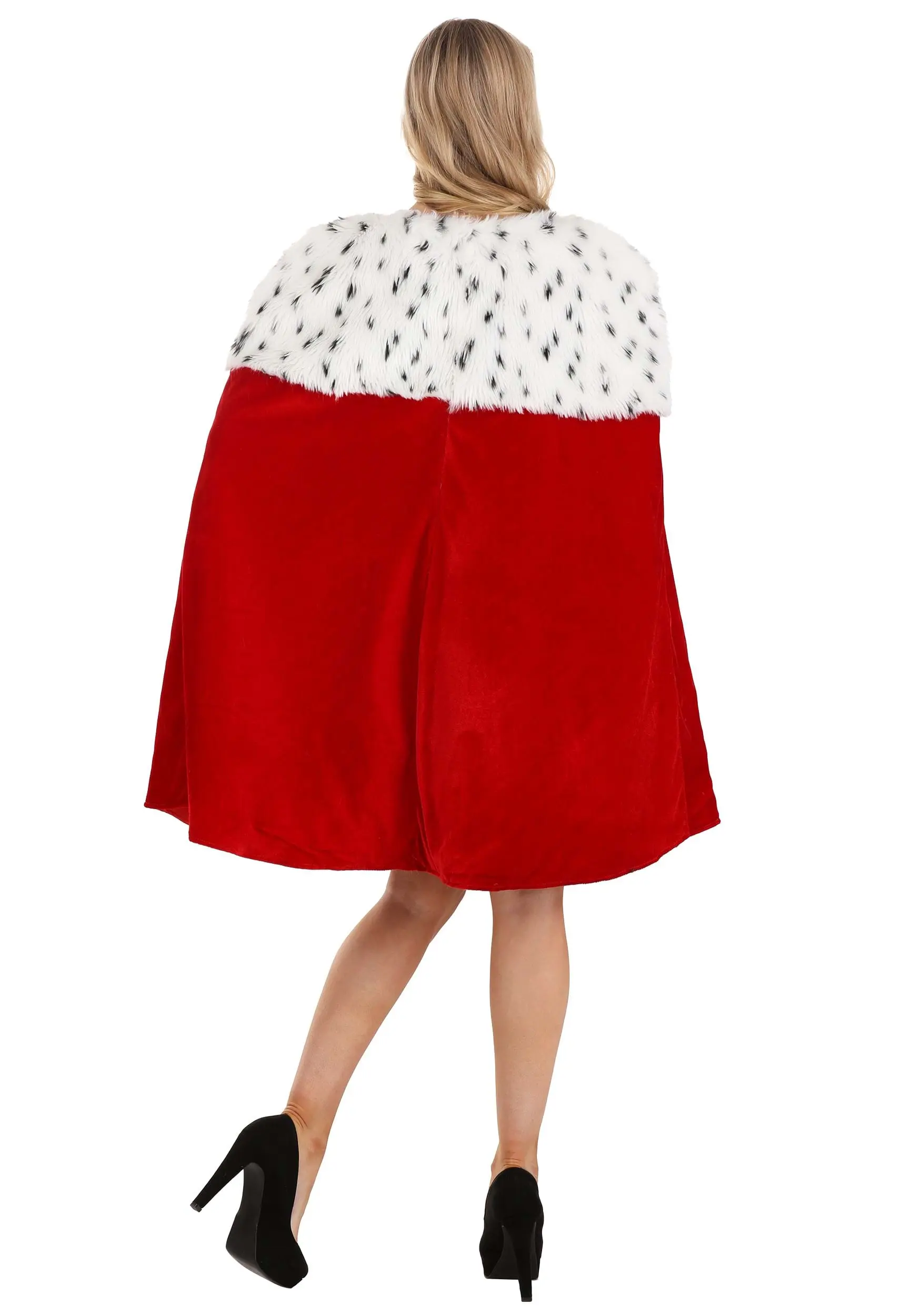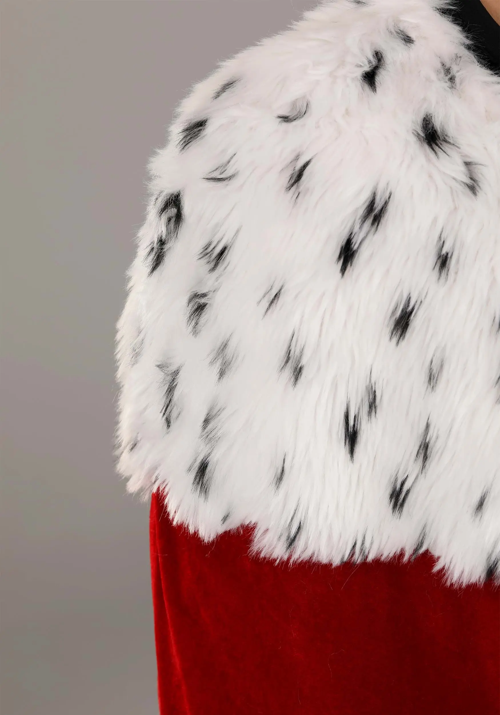 - Wide faux fur collar has tufts of black meant to look like ermine