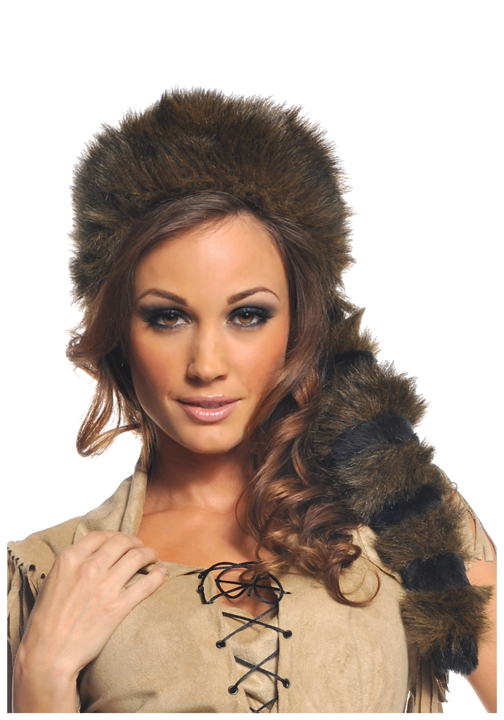 - Faux fur tail is 14 inches long with black and brown stripes