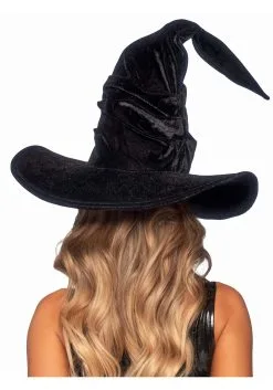 Black Velvet Ruched Witch Hat For Women