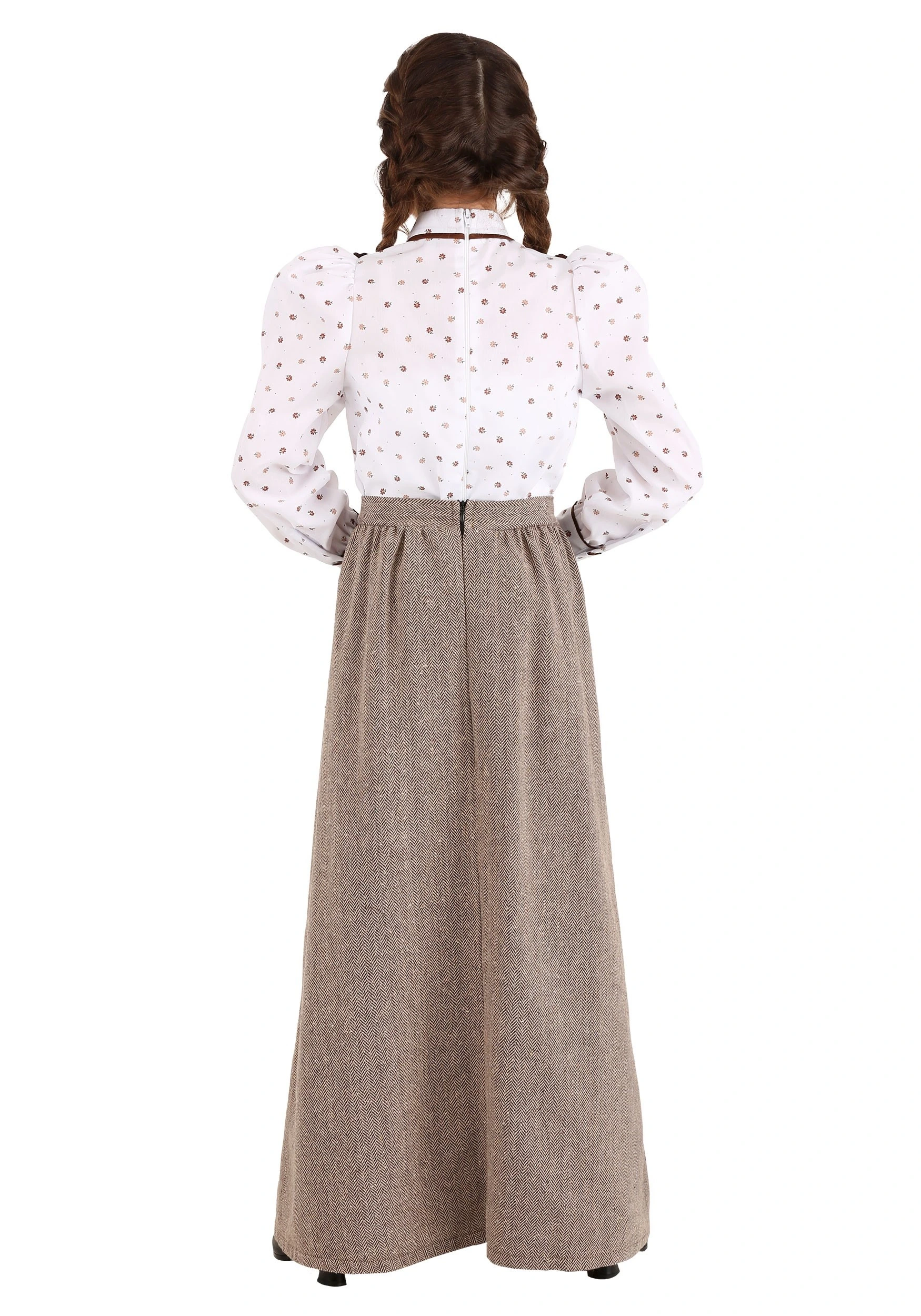 - High collar, slightly puffed sleeves, decorative buttons on front yoke
