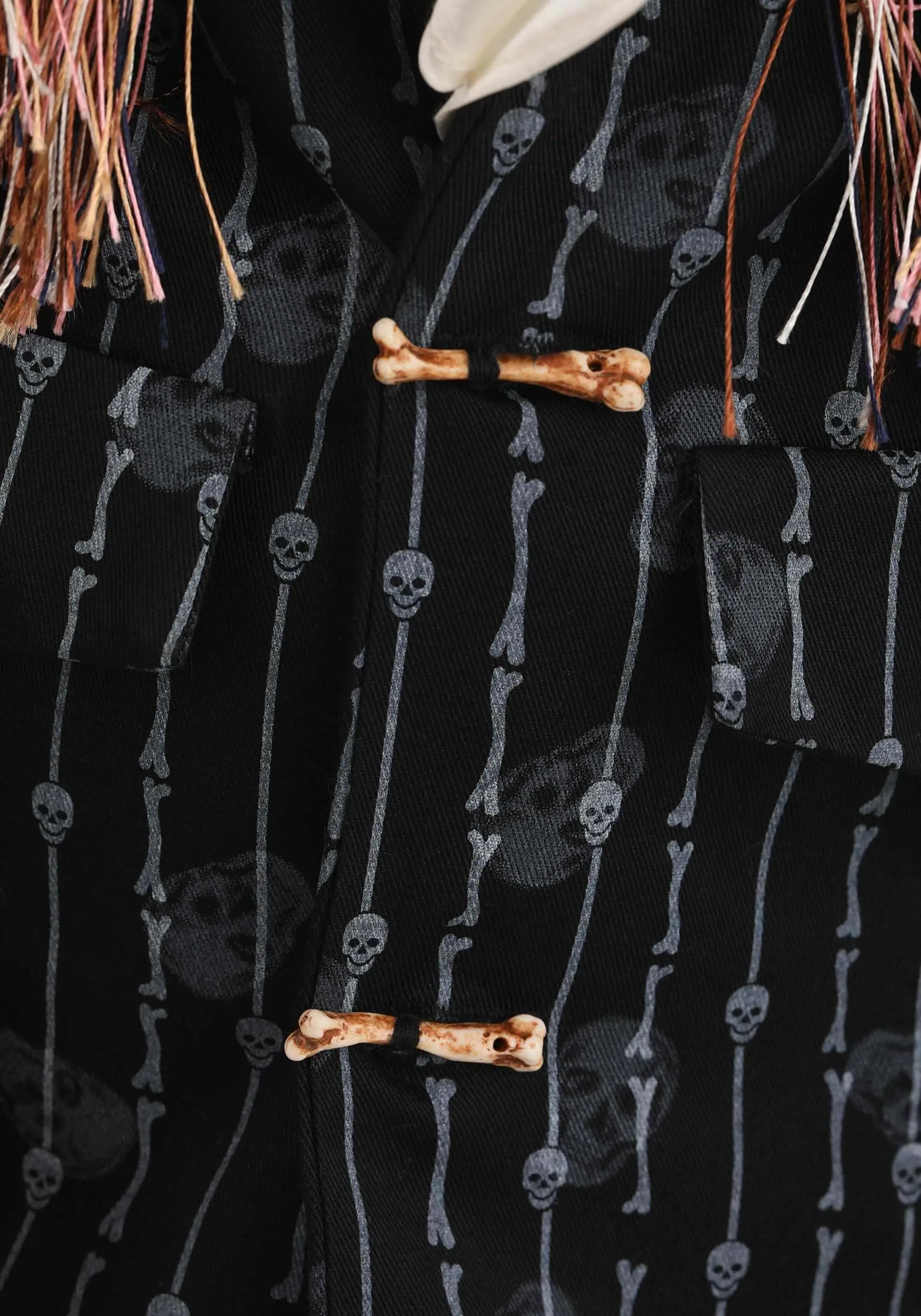 - Skull patterned jacket w/ fringe along the collar and lapels