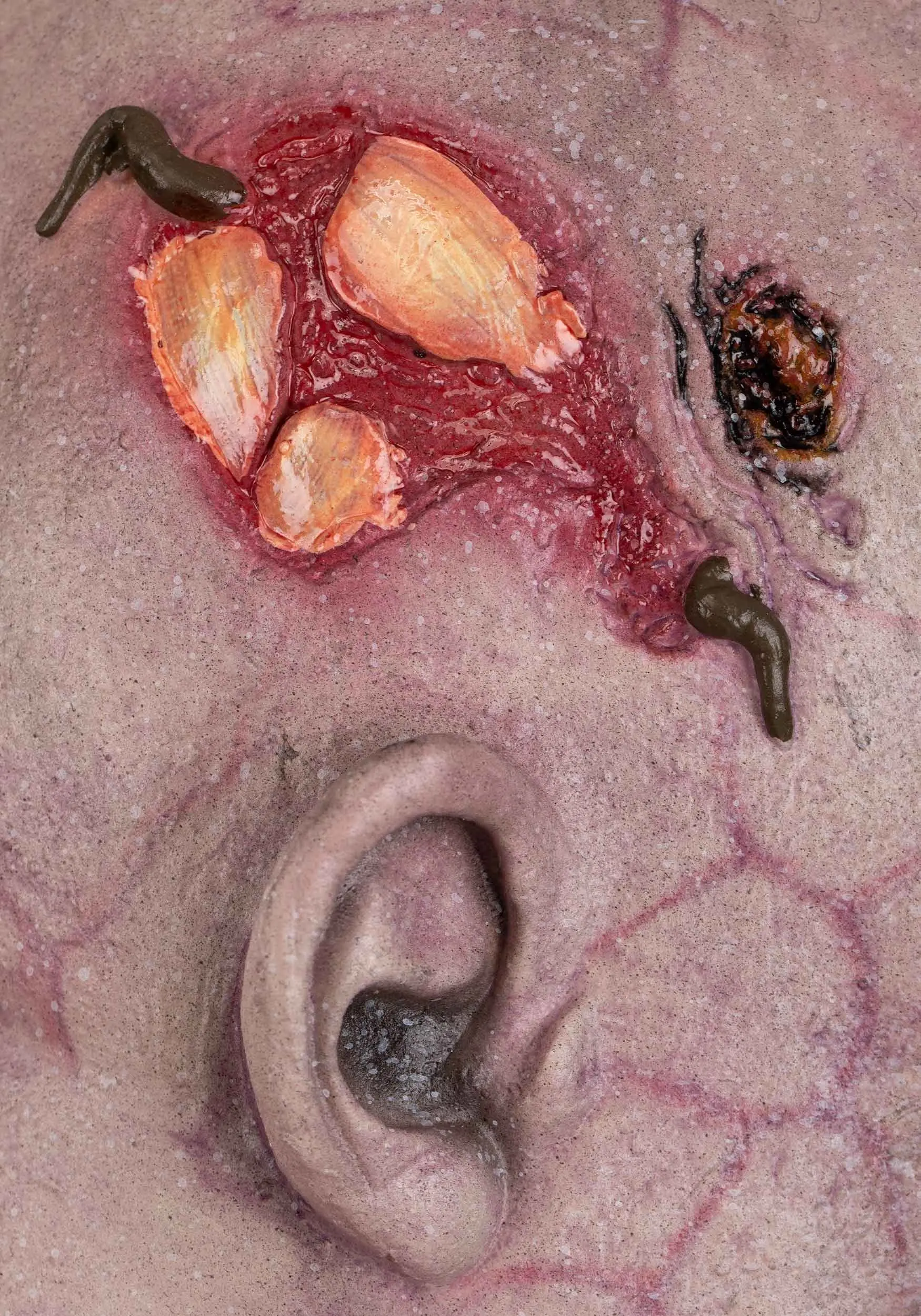 - Detailed sculpt of decaying flesh, rotting teeth, and pupil-less eyes